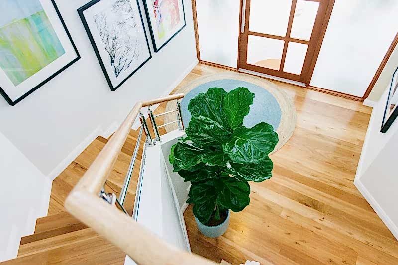 The entrance was designed around the world map that Lianne’s children gave her. You can feel the energy and joy when you walk into this home. A statement three tier custom pendant light from St John’s Lamps in Perth makes for a powerful statement and is complemented by custom walnut shelves, an oak console table, colourful artwork from Designer Boys and West Elm geometric shaped mirrors.